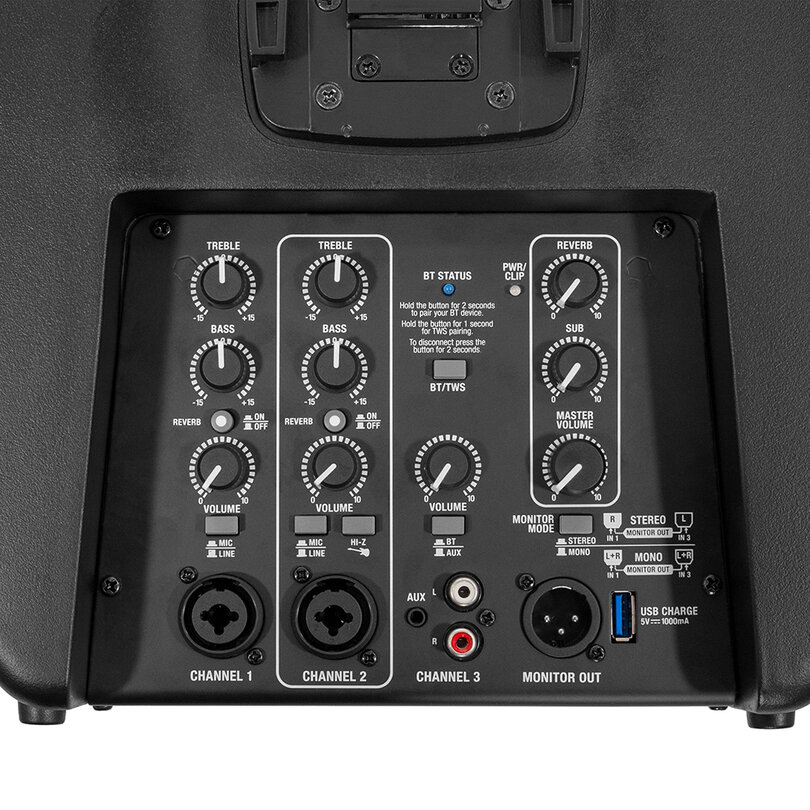 Sa batterie rechargeable offre une autonomie impressionnante de 6 18 heures, selon le volume, et se recharge complètement en seulement 3 heures. La qualité sonore de ce système est d’une clarté irréprochable, soutenue par un DSP soigneusement réglé pour des voix cristallines et des basses profondes. Le caisson de basses de 8 pouces assure la performance dans les fréquences graves, tandis que les quatre haut-parleurs de 2,75 pouces gèrent les médiums et les aigus. Le large angle de dispersion sonore assure une couverture uniforme de l’espace. En matière de connectivité, le Mac Mah SC-400 GO est extrêmement flexible. Il propose des entres XLR / Jack combines pour micro et ligne, ainsi qu’une entre RCA et une prise 3,5 mm. Une sortie mix XLR permet d’ajouter un haut-parleur ou un amplificateur supplémentaire. Pour assurer la sécurité et la longévité de votre équipement, un limiteur est intégré pour éviter les distorsions même des volumes levs. Ce système de sonorisation est également muni d’un chargeur USB pour recharger vos appareils, d’un amplificateur de Class D éco-énergétique, et de poignes de transport intégrées pour une mobilité optimale. La housse de transport offerte est très pratique avec ce système dj polyvalent. Idéal pour toute une gamme d’applications, du DJing aux spectacles live, le Mac Mah SC-400 GO est une solution de sonorisation complète et fiable.