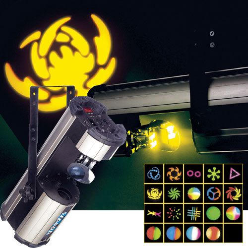 Projecteur Miroir Asservi bas sur une lampe halogne 150W, 15 Gobos, 15 Couleurs+blanc