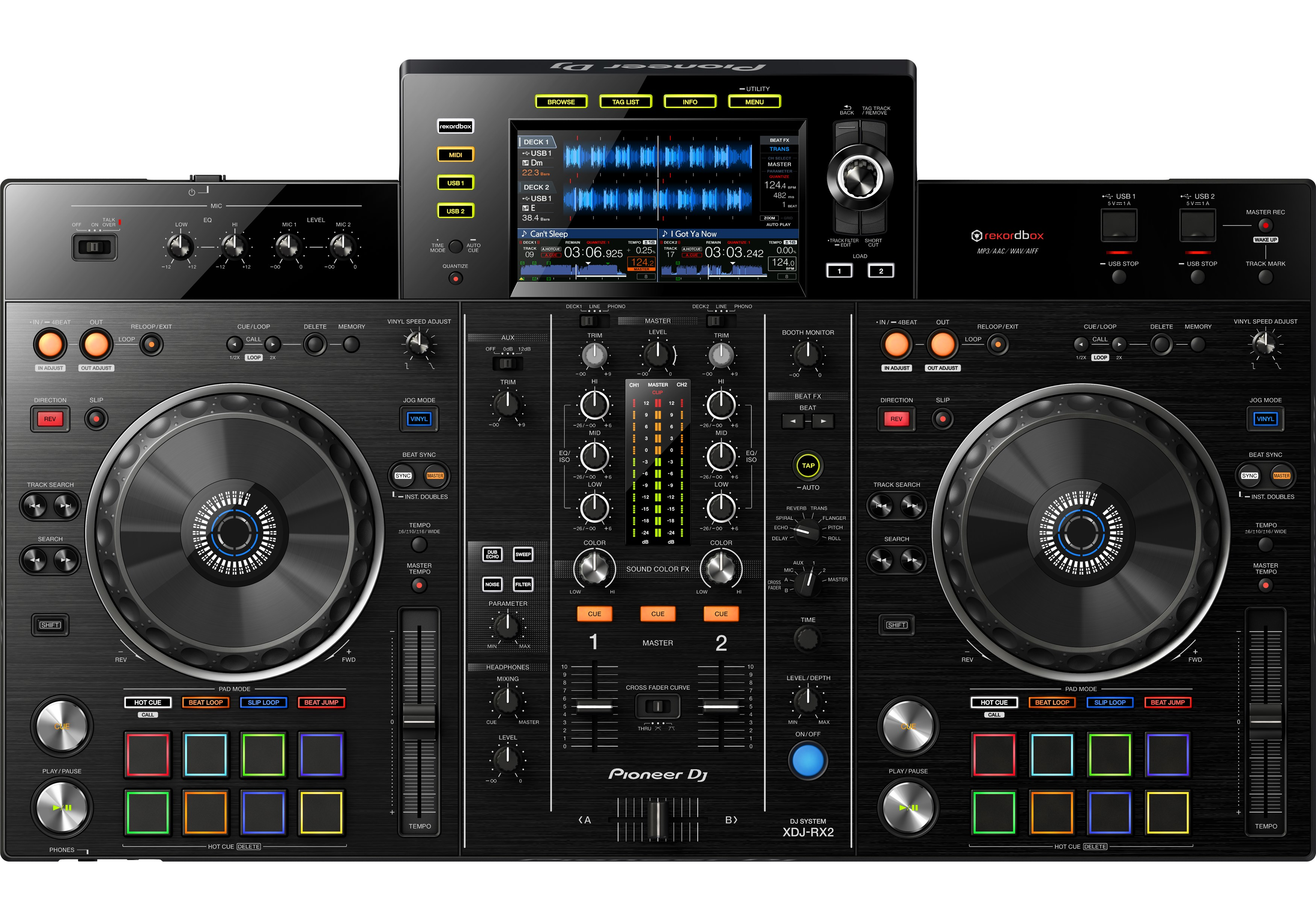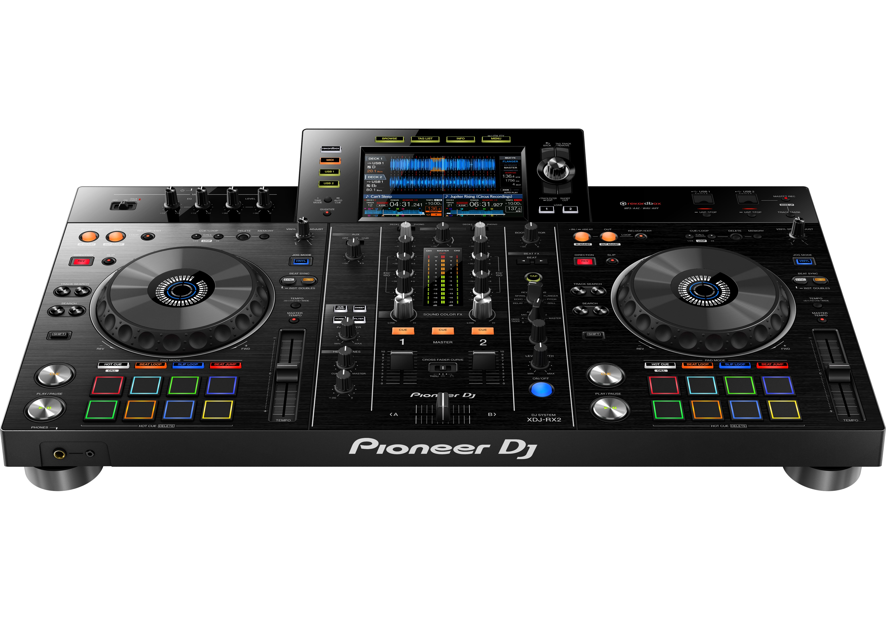 Le XDJ-RX2 possède un grand écran tactile 7 pouces avec recherche par clavier QWERTY, ainsi que des fonctionnalités héritées du CDJ-2000NXS2 et de la DJM-9000NXS2, comme le sélecteur rotatif, les raccourcis, le Track Filter, et les effets Sound Colour FX et Beat FX. Les 8 grands Performance Pads multicolores vous offrent un contrôle fluide des Hot Cues, Beat Loop, Slip Loop et Beat Jump. Faites passer vos mixes au niveau supérieur en profitant de la portabilité et de la facilité d’utilisation d’une solution tout-en-un.