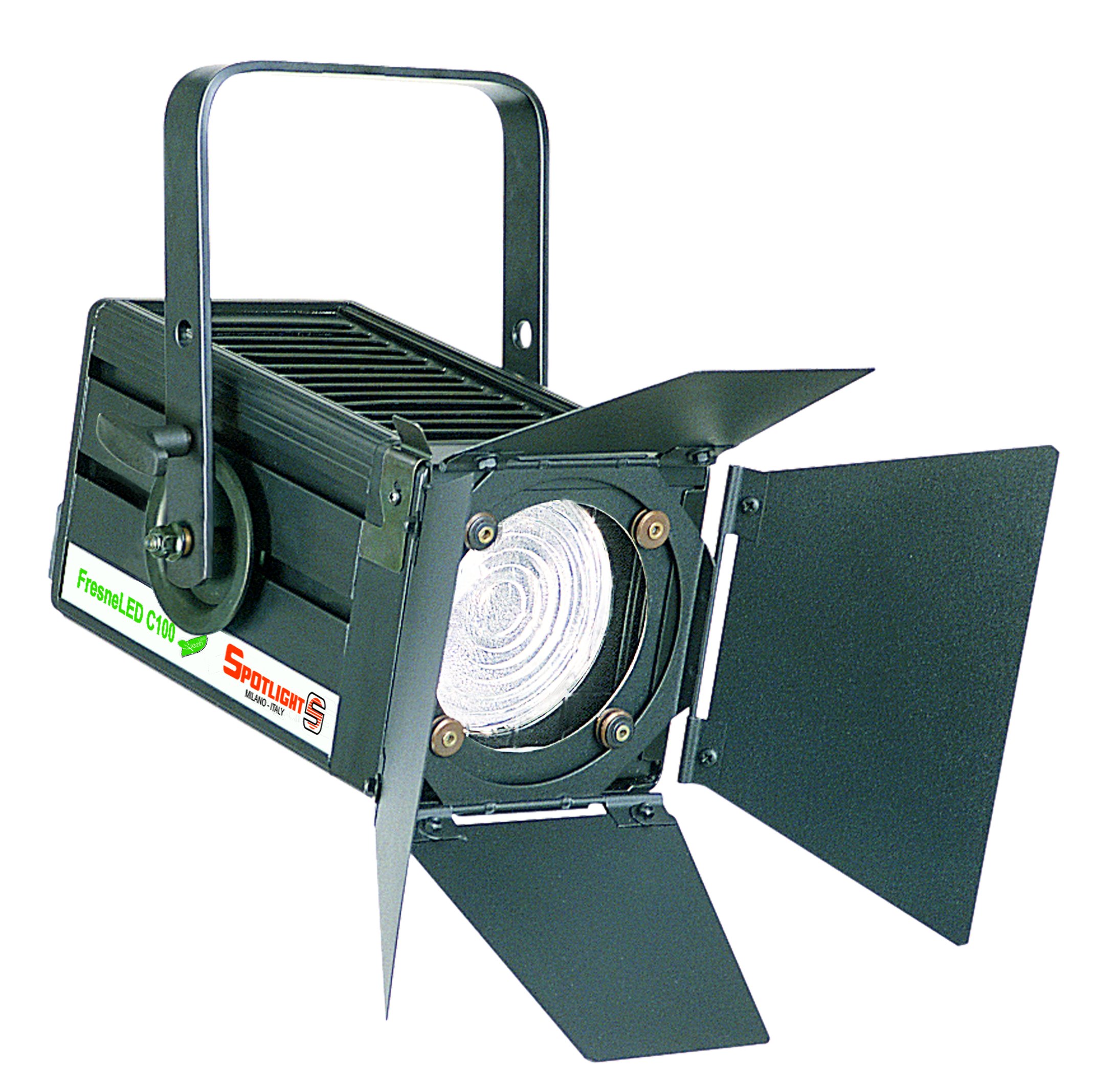In order to keep the same highly professional features, the fixture is using the same external housing of the well known AREA 12 Fresnel spotlight, with the same strong aluminium die-cast structure, excellent ventilation for the best heat dissipation, extremely high resistance to shocks, corrosion etc, and employing the same standard accessory range: barn-doors, filter holders, etc.